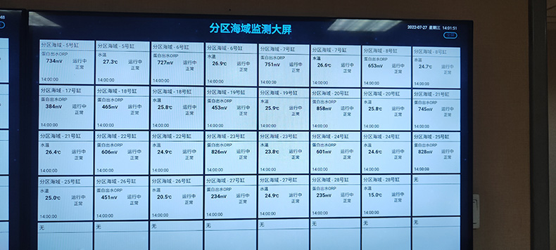 與以往不同的是,此次北京海洋館的應用現場,運維人員將所有儀表參數都通過數字化技術,完整清晰地顯示在海洋館監控大屏上,方便工作人員實時查看,做到對場館內數據了然于胸。