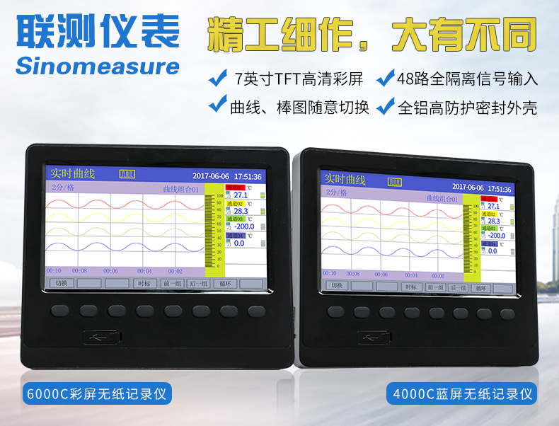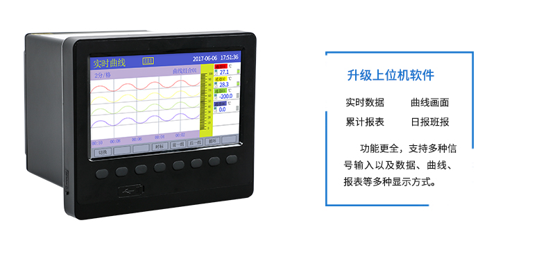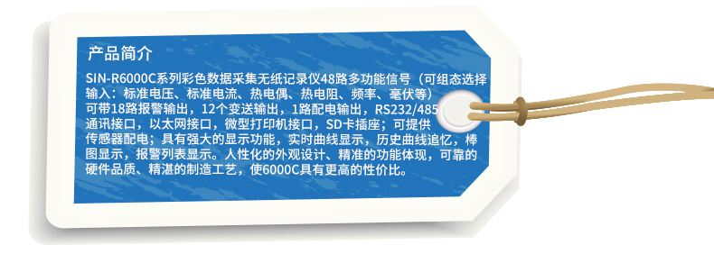 SIN-R6000C系列彩色無紙記錄儀48路萬能輸入(可組態(tài)選擇輸入:標(biāo)準(zhǔn)電壓、標(biāo)準(zhǔn)電流、熱電偶、熱電阻、頻率、毫伏等)。可帶18路報警輸出,12個變送輸出,RS232/485通訊接口,以太網(wǎng)接口,微型打印機接口和USB接口,SD卡插座;可提供傳感器配電;具有強大的顯示功能,實時曲線顯示,歷史曲線追憶,棒圖顯示,報警列表顯示。