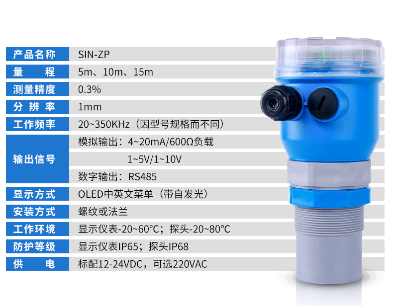 聯(lián)測(cè)SIN-ZP超聲波液位計(jì),適用場(chǎng)合:污水處理 窨井 工廠(chǎng)水箱 罐體 市政工程 自來(lái)水 水利水電 鋼鐵 煤礦 電力 石油化工 城市內(nèi)河湖泊、交通以及食品加工等高精度要求行業(yè)。
